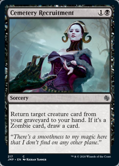 Return target creature card from your graveyard to your hand. If it's a Zombie card, draw a card.