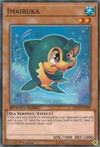 If this card you control is destroyed by your opponent's card and sent to your GY: Send the top card of your Deck to the GY, then, if it is a WATER monster, draw 1 card.