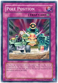 The face-up monster(s) with the highest ATK on the field is unaffected by any Spell Cards. When "Pole Position" is removed from the field, destroy the face-up monster(s) with the highest ATK on the field.